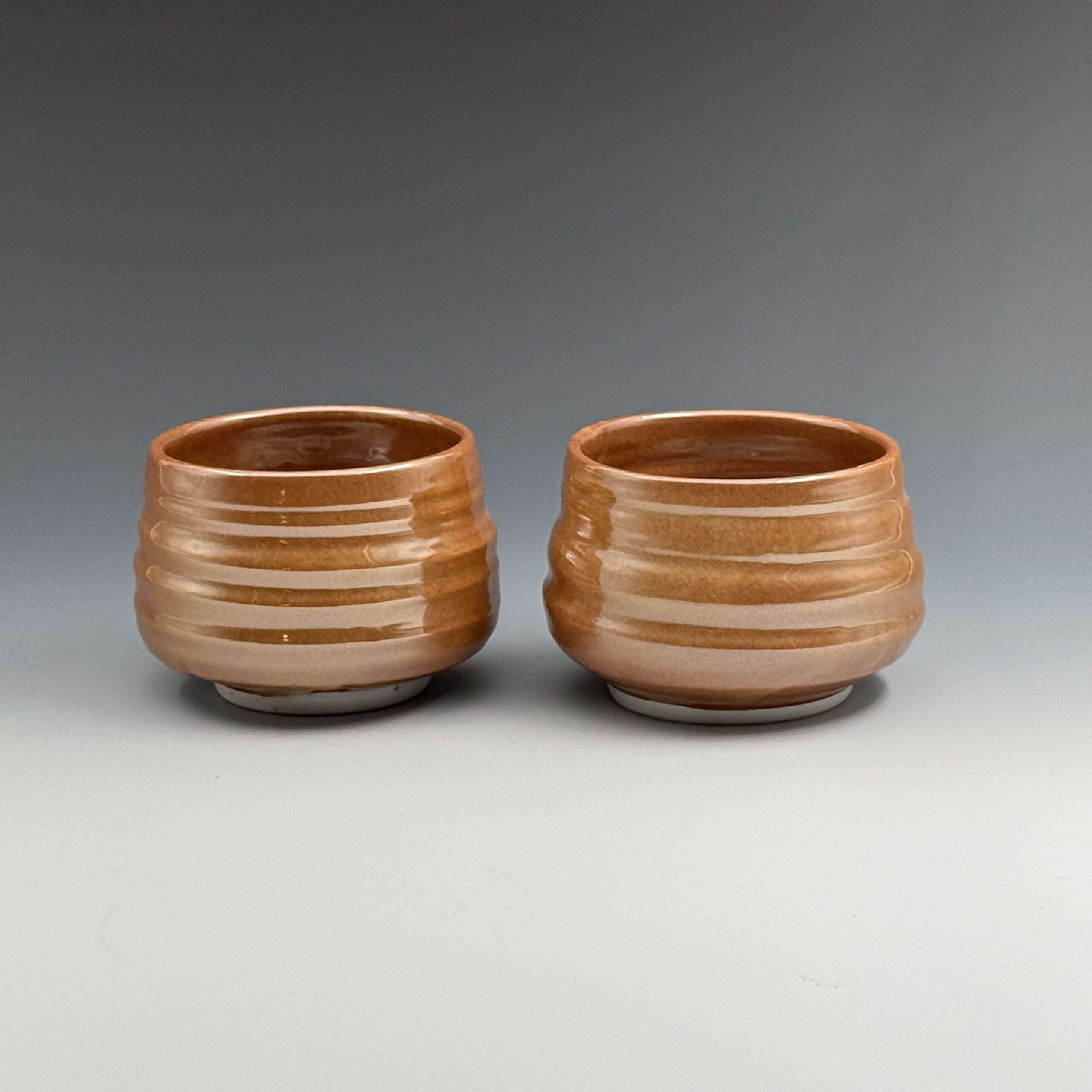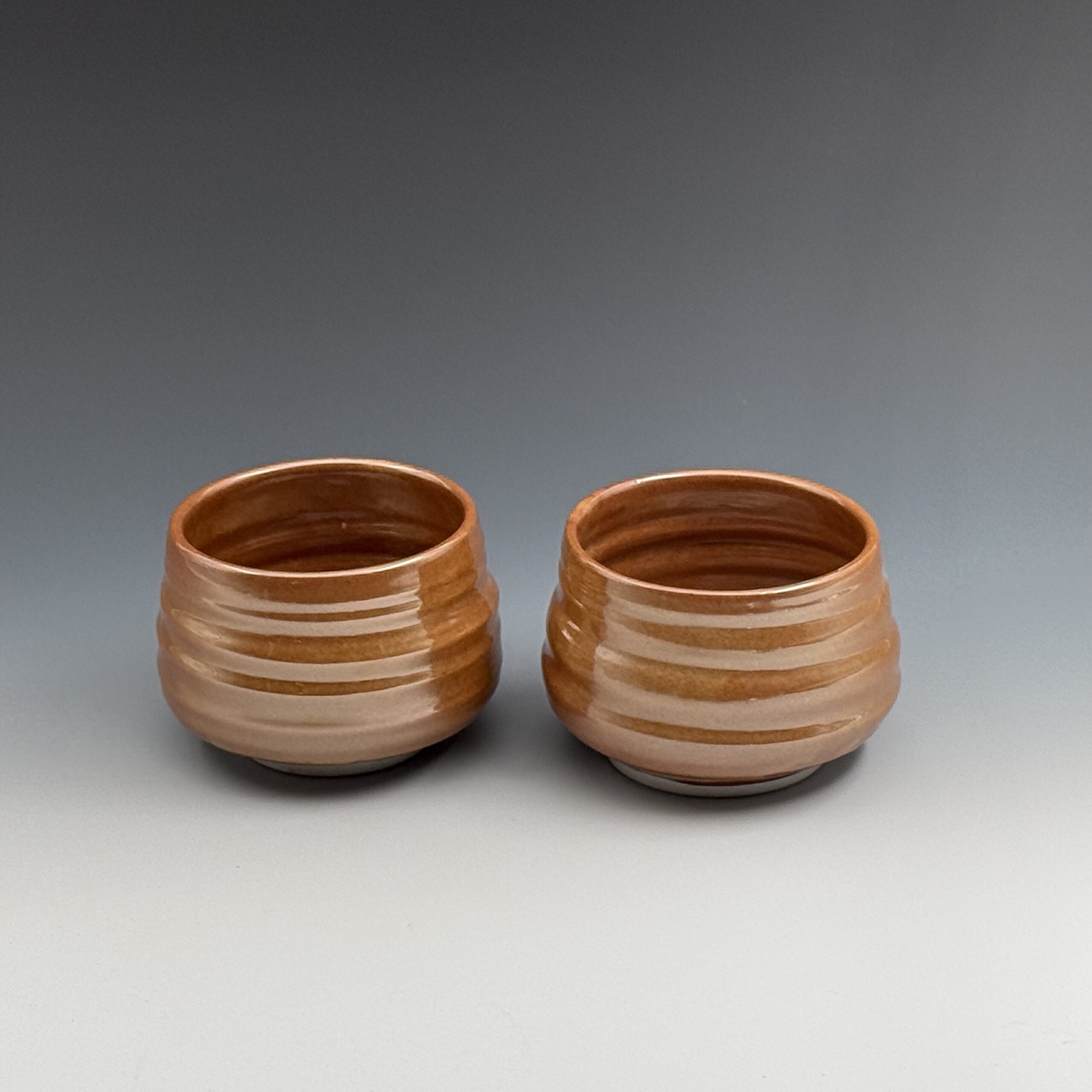 Set of two cups in shino glaze. 3″ tall, 11oz. Cone 11, gas fired.