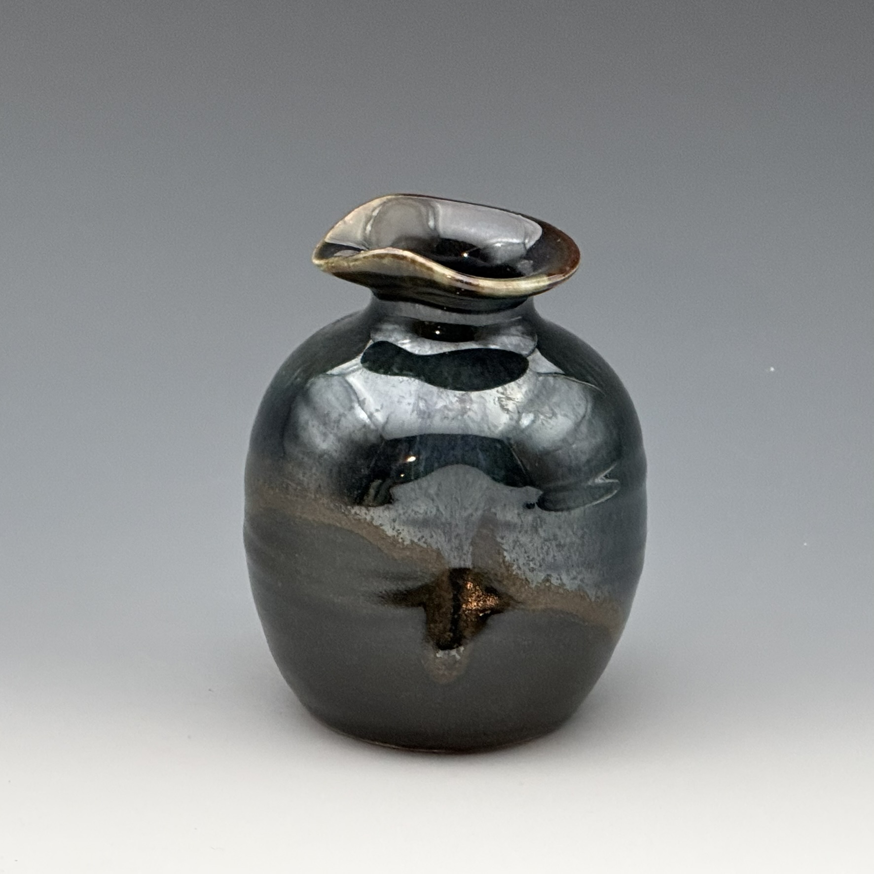 8 oz hand-thrown pitcher with finger indents for gripping. Cone 11, gas fired.